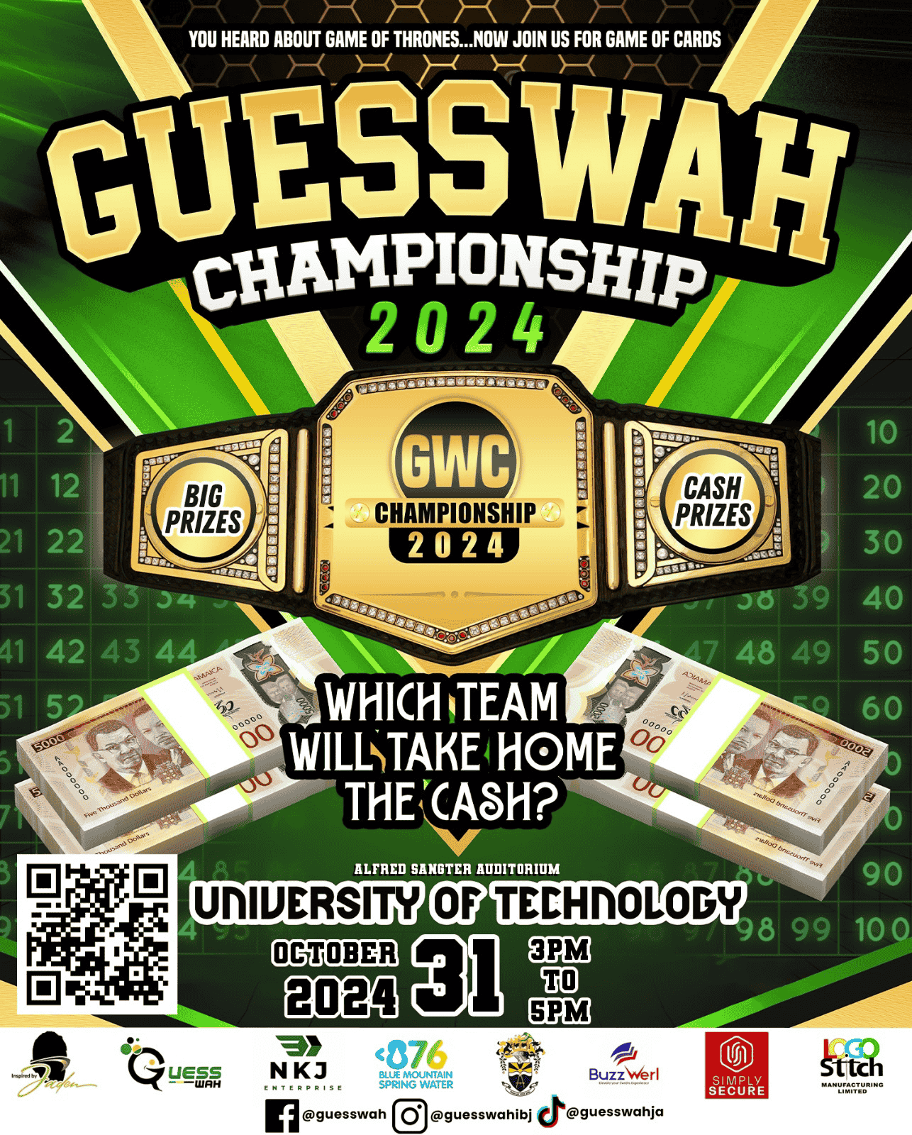 - The winner will be awarded $8,000 JMD at the Guesswah Championship event on October 31, 2024, held at UTech.